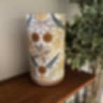 Unique handmade cylinder table lamps crafted from Australian Tallowwood and new and upcycled 100% natural fibre fabrics. A beautiful addition to any table or sideboard.